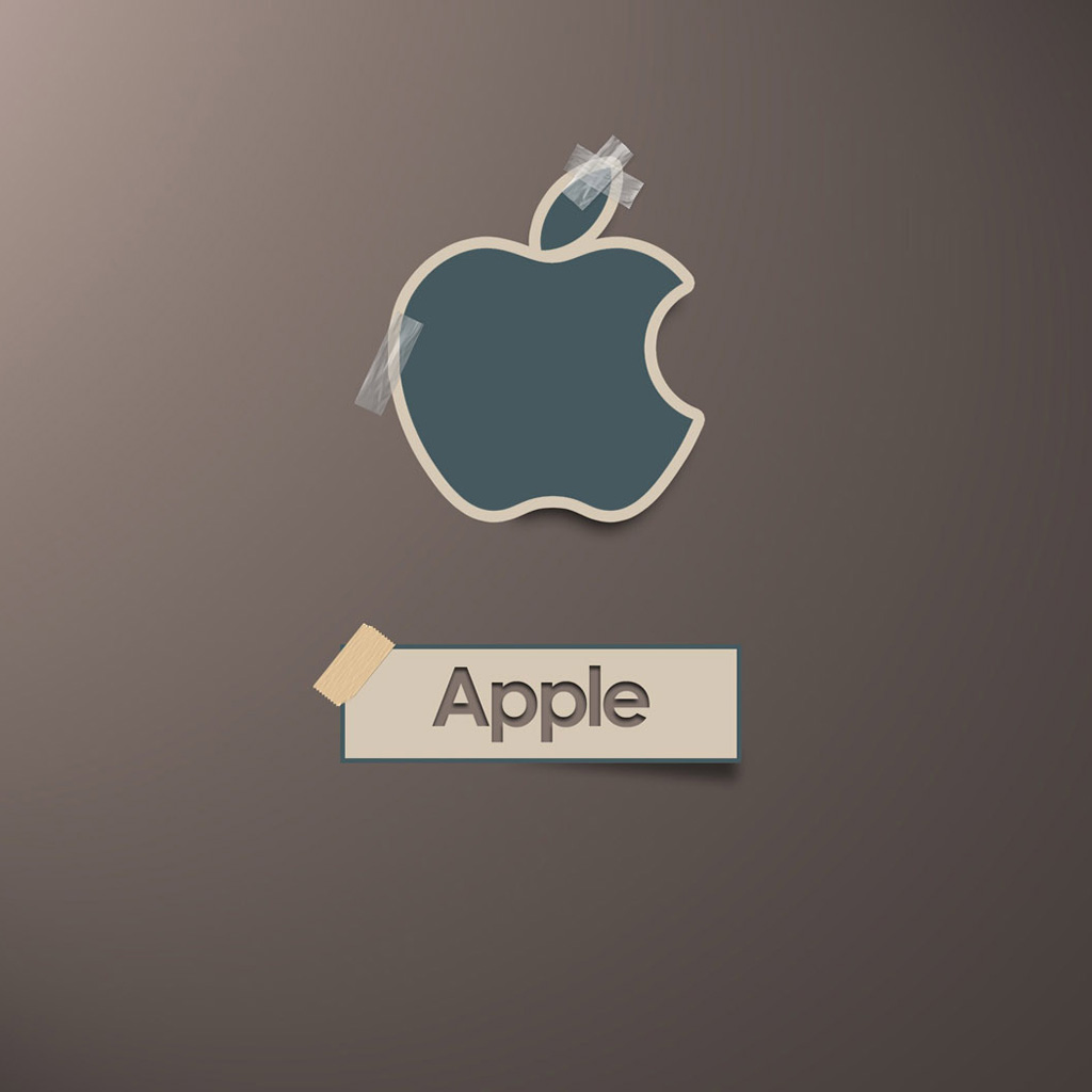 - Лого и надпись Apple на стикере и клейкой ленте на коричневом фоне Apple обои для iPad