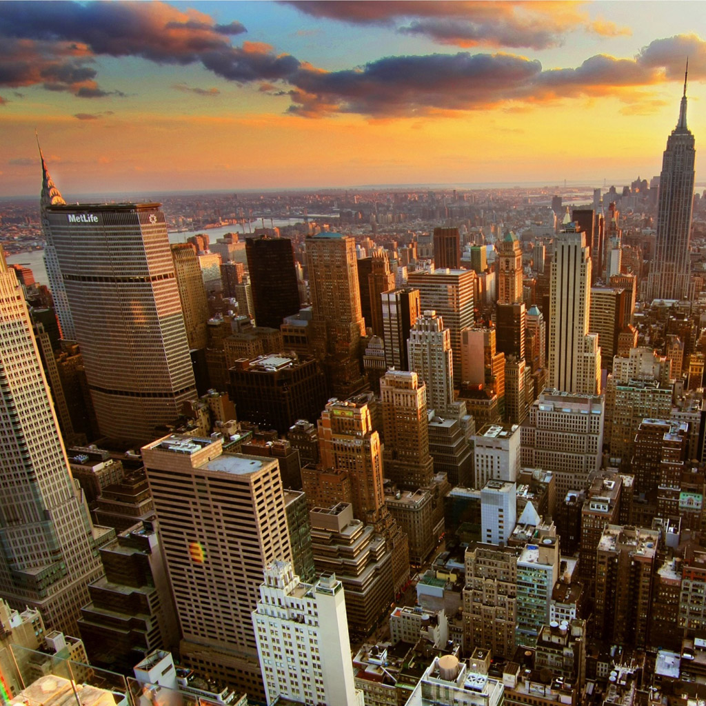 - Красивое, качественное фото - вечерний Нью-Йорк с высоты птичьего полета Фото обои для iPad